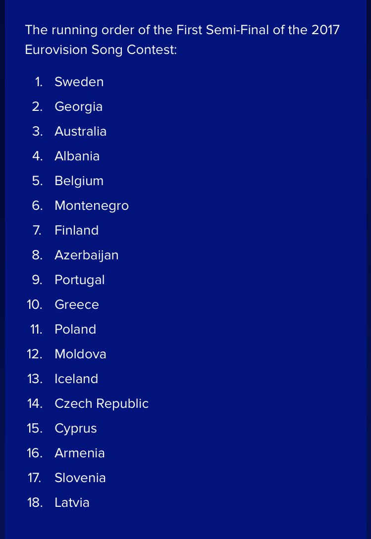 El orden de marcha de la primera semifinal del Festival de Eurovisión 2017: